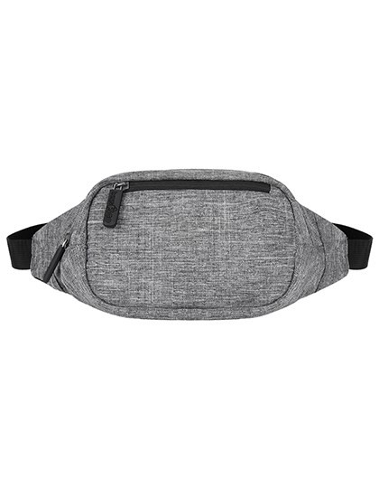 600D Polyester Gürteltasche in Grey Melange | Reißverschluss-Hauptfach mit zwei zusätzlichen, offenen Fächern | Eine Reißverschluss-Tasche auf der Vorderseite | Verstellbarer Tragegurt mit Klick-Verschluss | Alle Reißverschlüsse in Schwarz, Gummi-Zipp-Puller mit „bags2GO“-Prägung | Volumen: ca. 4 Liter | Lieferung ohne Inhalt/Deko