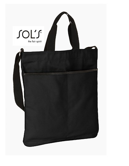 Zwei Fronttaschen mit Kunstleder-Einsatz | Kontrastfarbener Tragegriff und verstellbarer Tragegurt | Eine Innentasche | Lieferung ohne Inhalt/Deko