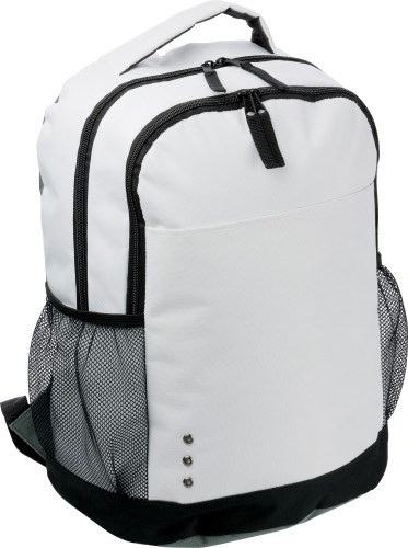 Rucksack aus Polyester (600D), mit zwei RV-Hauptfächern, zwei Netzfächern, gepolsterten Schultergurten, gepolstertem Rücken und Tragegriff.