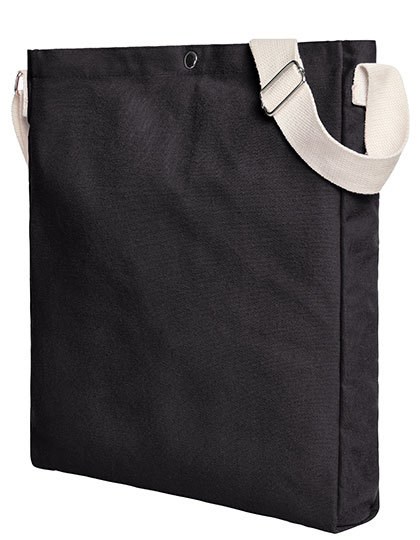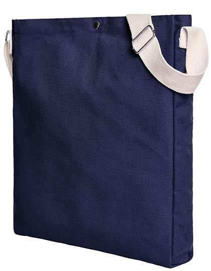 Gradliniger Shopper mit großer Werbefläche | Geräumiges Hauptfach - ideal geeignet für Kataloge und DIN A4 Unterlagen, mit Druckknopf verschließbar | Breiter, längenverstellbarer Baumwoll-Schultergurt | Lieferung ohne Inhalt/Deko
