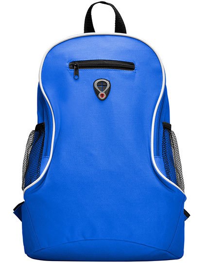 100% Polyester, 600D | Kleiner Promotion Rucksack mit einstellbarem Schultergurt | Abmessungen: 30 x 40 x 18 cm | Trageschlaufe oben | Fronttasche mit Reißverschluss | Seitentasche aus mikroperforiertem Gewebe | Herausreißbares Label | Regenabweisend | Volumen: ca. 12 Liter | Lieferung ohne Inhalt/Deko