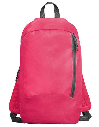 100% Polyester, 600D | Kleiner Promotion Rucksack mit einstellbarem Schultergurt | Abmessungen: 23 x 40 x 12 cm | Trageschlaufe oben | Fronttasche mit Reißverschluss | Besonders leicht und kompakt | Herausreißbares Label | Regenabweisend | Volumen: ca. 7 Liter | Lieferung ohne Inhalt/Deko