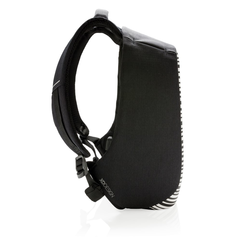 Der Bobby Compact ist die kleinere und farbenfrohere Version der Bobby Familie - der spezielle Druck ist hier das Besondere! Jeden Tag werden 400.000 Taschendiebstähle weltweit getätigt. Mit dem Bobby Anti-Diebstahl-Rucksack brauchen Sie sich nicht mehr zu sorgen! Der Rucksack ist aus hochwertigem Polyester hergestellt und hat reflektierende Drucke für Ihre Sicherheit in der Nacht. In den vielen versteckten Taschen an der Außenseite verstauen Sie schnell und einfach Ihre Utensilien. In der Innenseite hingegen befinden sich gepolsterte Fächer für einen 14’’ Zoll Laptop, Tablet bis zu 9’’ Zoll und alle Ihre persönlichen Sachen. Geschütztes Design®