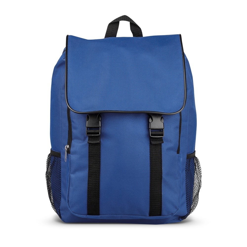 Rucksack aus 600D mit einem Hauptfach, einer Vordertasche und 2 Mesh-Seitentaschen. Dieser Rucksack hat eine Kapazität von 24 l. 280 x 390 x 220 mm