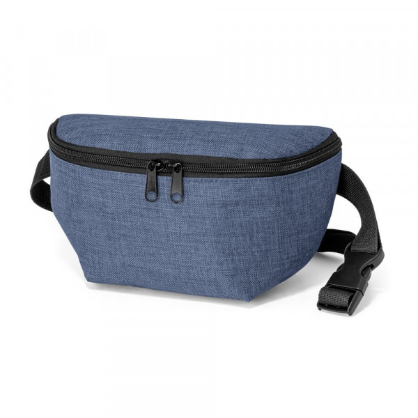 Gürteltasche aus 600D HD mit einem Hauptfach mit Doppelreißverschluss und einer Tasche mit Reissverschluss auf der Rückseite. Befestigt wird diese mit einem verstellbaren Gurt mit Steckschnalle. 220 x 120 mm