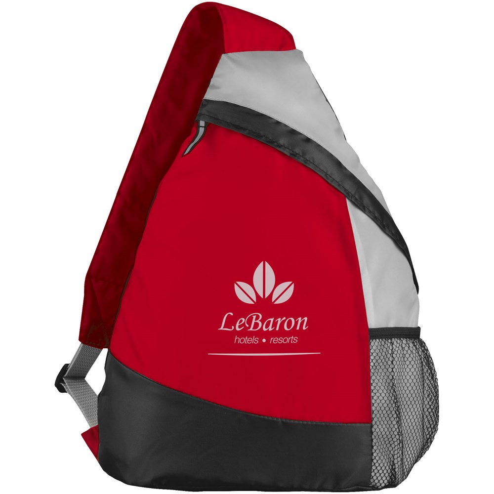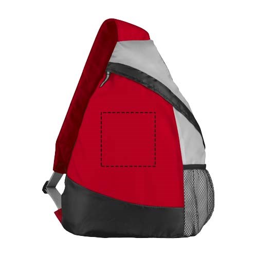 Reißverschluss-Hauptfach mit reflektierenden Akzenten am Reißverschluss Puller. Seitliche Netztasche. Größenverstellbarer, verstärkter gepolsterter Schultergurt.
