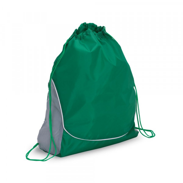 Rucksack mit Kordelzug aus angenehm weichem 190T Polyester mit fröhlichem zweifarbigem Design in verschiedenen Farben. Mit grauen Seiten und farblich passenden Zugbändern. Verstärkte Ecken mit Metallösen.