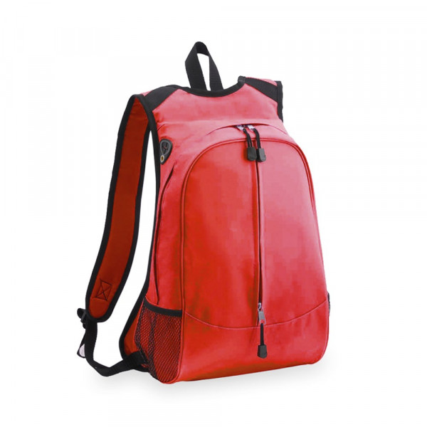 Rucksack aus strapazierfähigem 600D Polyester mit coolem Design in vielen Farben. Mit Kopfhörerausgang, Doppelreißverschluss mit Zugbändern für einfaches Öffnen, Fronttasche und elastischen Netztaschen an den Seiten. Mit verstärkten Ecken und schwarzen Elementen. Verstellbare ergonomische Schultergurte mit Polsterung.