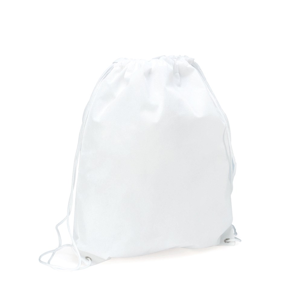 Non-Woven-Rucksack mit Kordelzug aus weichem Faservlies in vielen lebendigen Farben. Mit Zugbändern in Schwarz und Verstärkung an den Ecken durch Metallösen.