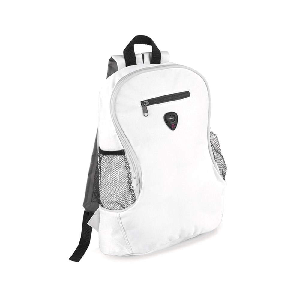Rucksack aus robustem 600D Polyester mit coolem Design und Kontrastdetails in Schwarz. Mit Kopfhörerausgang und Fronttasche sowie Netztaschen an den Seiten und verstellbaren Schultergurten mit Polsterung.