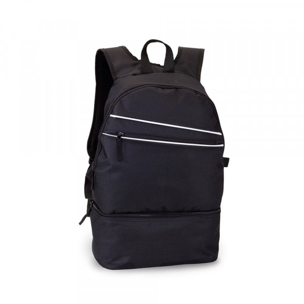 Rucksack aus resistentem 600D Polyester mit coolem Design in vielen verschiedenen Farben. Mit Reißverschluss mit Zugband für einfaches Öffnen, separatem Fach für Schuhe und Fronttasche sowie gepolstertem Rückenpanel und verstellbaren Schultergurten mit ergonomischer Polsterung.