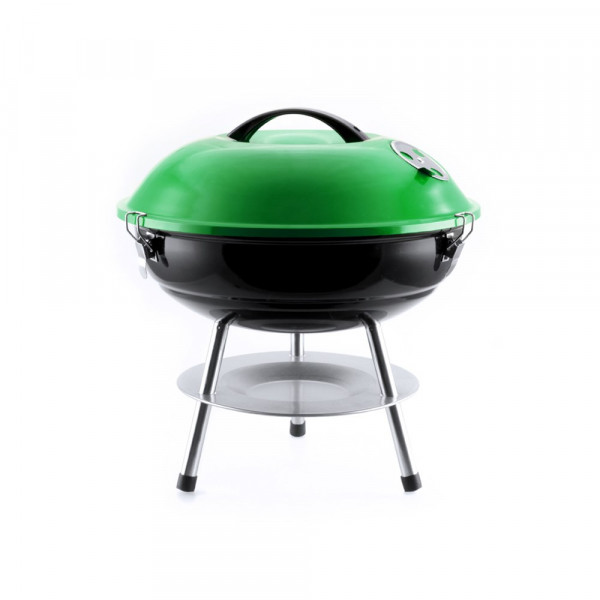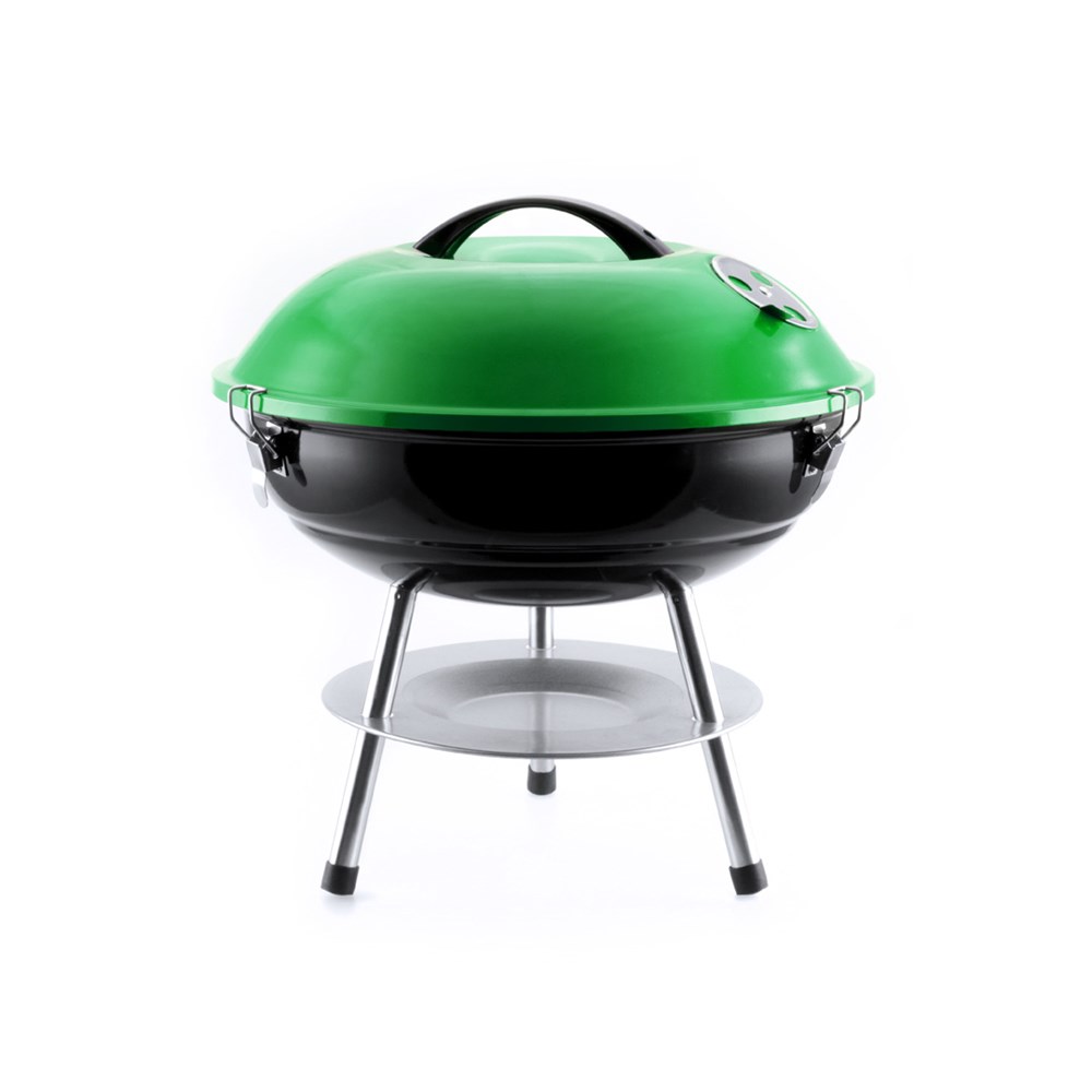 Grill aus resistentem Stahl mit schwarzer Grillschale und Deckel in lebendigen Farben mit komfortablem Griff und Lüftungsöffnungen. Zudem mit Metallrost und rutschfesten Standbeinen. Präsentiert in einer attraktiven Designbox.