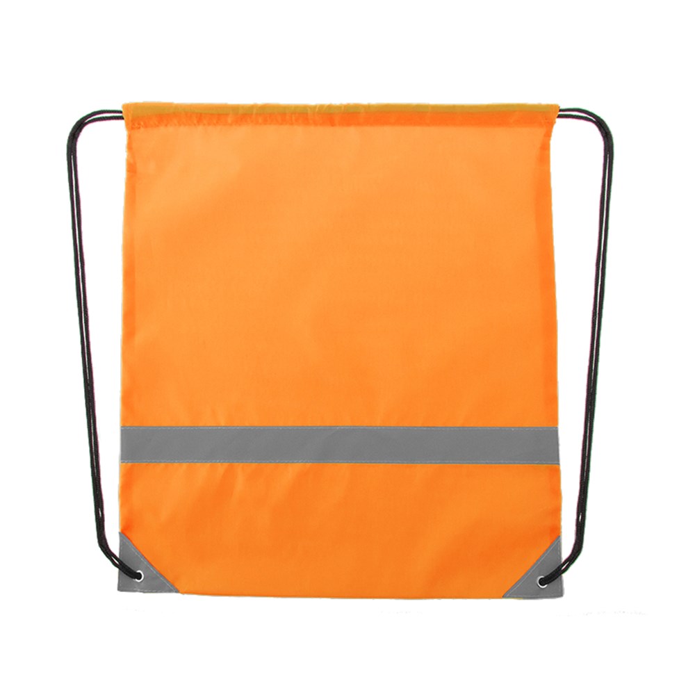 Reflektierender Rucksack mit Kordelzug aus weichem 190T Polyester in lebendigen Farben mit reflektierender Frontleiste. Mit Zugbändern in Schwarz und reflektierenden, mit Metallösen verstärkten Ecken.