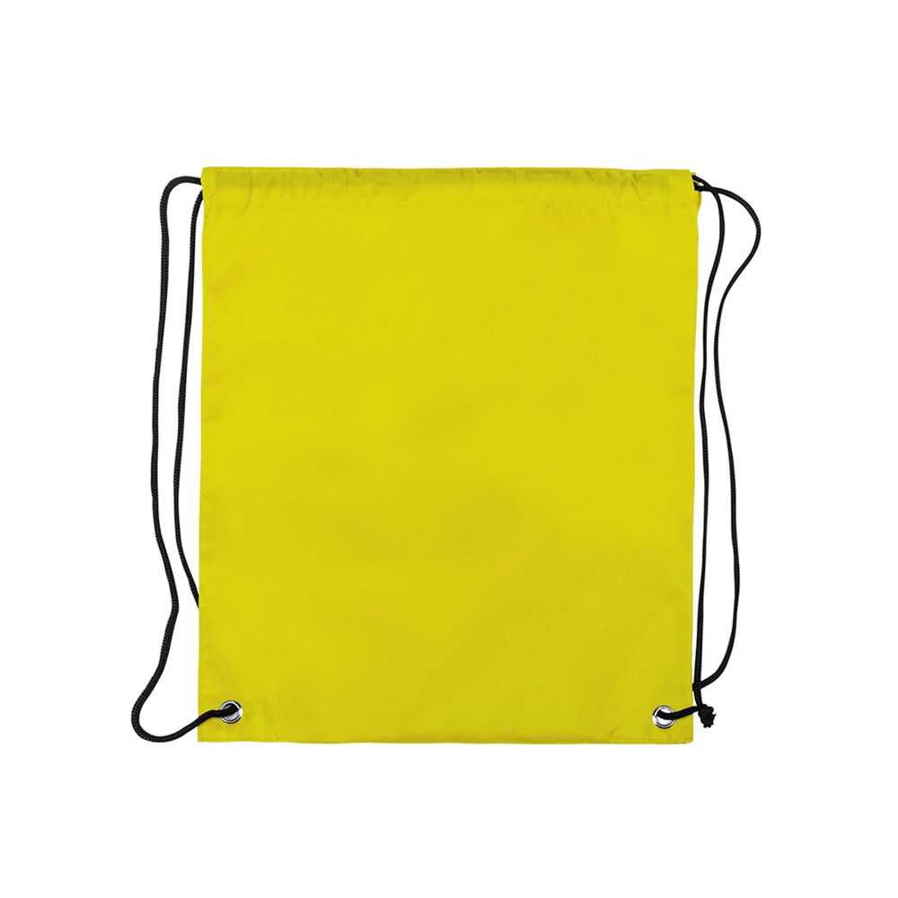 Rucksack mit Kordelzug für Kinder aus weichem 210T Polyester in kräftigen Farben. Mit Zugbändern in Schwarz und Ecken mit Metallösen zur Verstärkung.
