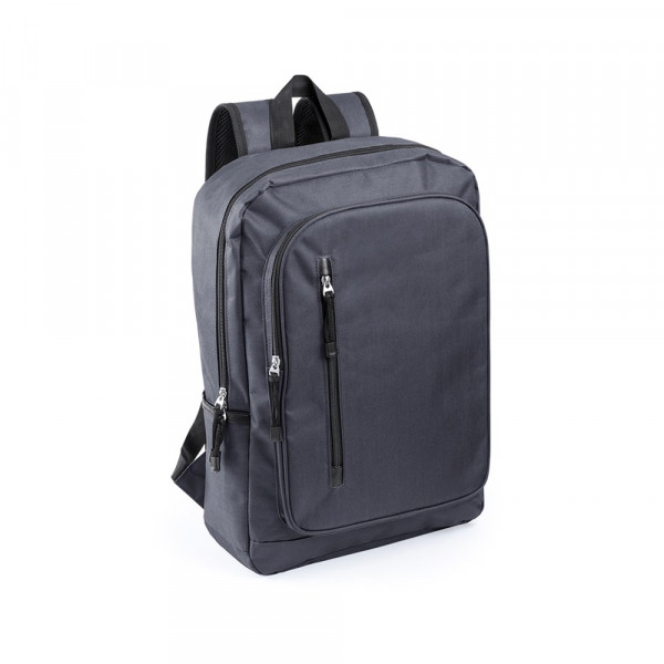 Robuster Rucksack aus 600D Polyester mit Reißverschluss und Fronttaschen. In schlichten Farben, mit gepolstertem Rückenpanel und Schultergurten sowie gepolstertem Innenfach für Laptop von bis zu 15 Zoll und Zugbändern am Zipper für einfaches Öffnen.