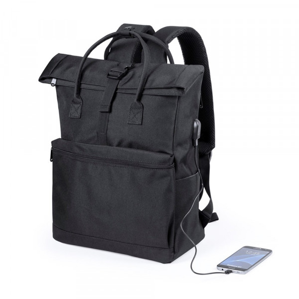Eleganter Business-Rucksack aus robustem 900D Polyester. Fach mit USB-Ausgang für externen Akku (nicht inklusive) im Inneren. Mit verstärkten Tragegriffen, verstellbarem Klickverschluss sowie Fach mit Reißverschluss an der Front und Seite. Mit gepolstertem Innenfach für Laptop von bis zu 15 Zoll und für Tablet von bis zu 10 Zoll, sowie vielen weiteren Taschen. Schulter- und Rückengurte mit ergonomischer Polsterung.