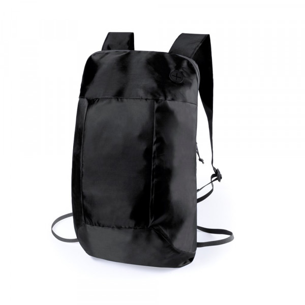 Faltbarer Rucksack aus weichem 201D Polyester in lebendigen Farben. Mit Reißverschluss, Kopfhörerausgang und verstärkten Ecken sowie verstellbaren Schultergurten und Kontrastdetails in Schwarz. Faltbar auf kleine Größe.