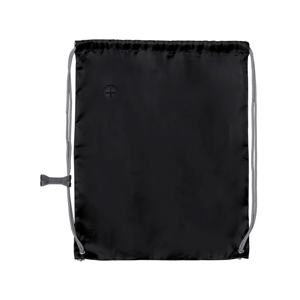 Rucksack mit Kordelzug aus weichem 190T Polyester in lebendigen Farben. Mit Kopfhörerausgang, extra dicken Zugbändern in Grau mit Stopper sowie Ecken mit Metallösen und Verstärkung.