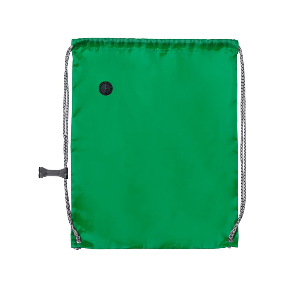 Rucksack mit Kordelzug aus weichem 190T Polyester in lebendigen Farben. Mit Kopfhörerausgang, extra dicken Zugbändern in Grau mit Stopper sowie Ecken mit Metallösen und Verstärkung.