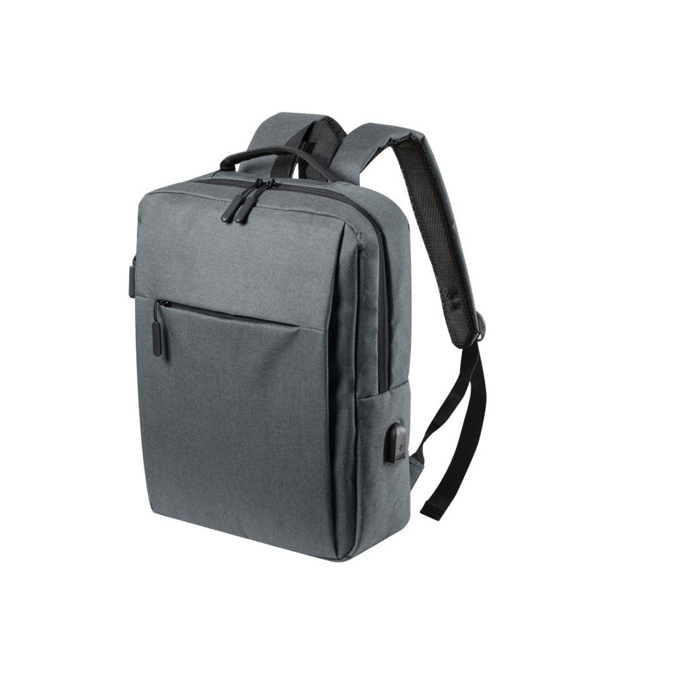 Business-Rucksack aus widerstandsfähigem Polyester 600D Material. Doppelreißverschlusstasche mit doppeltem Puller und einer Vielzahl von Vordertaschen. Innenfach mit gepolsterter Tasche für Laptop bis zu 15 Zoll Größe, einschließlich USB-Ausgang zum Laden mobiler Geräte (Kabel im Lieferumfang enthalten, Zusatzakku nicht enthalten). Verstärkte Ecken und Zubehör in schwarzer Farbe. Mit gepolsterter Rückseite und verstellbaren, gepolsterten Schultergurten. Erhältlich in schlichten Farben.