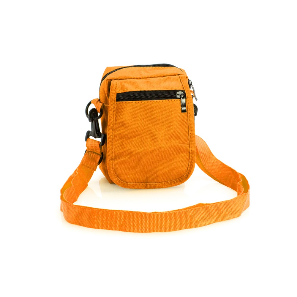 Mini-Umhängetasche aus resistentem 600D Polyester in verschiedenen Farben. Mit Reißverschluss, Klappe mit Klettverschluss und Reißverschlusstasche. Schlaufe für die Befestigung am Gürtel auf der Rückseite. Zudem mit farblich passendem, verstellbarem Schultergurt mit Karabinerbefestigung.
