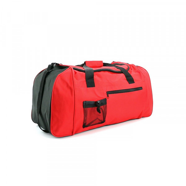 Vielseitig verwendbare Tasche aus 600D Polyester mit hoher Kapazität und lebhaftem, zweifarbigem Design mit Seiten und Boden in Schwarz. Mit Paspel in passender Farbe, Hauptfach mit Doppelreißverschluss sowie Außentasche mit Reißverschluss. Netztasche mit Kordelzug und Stopper an der Außenseite sowie stabile Griffen aus Nylon mit Klettverstärkung. Mit verstellbarem Schultergurt, zweifacher Karabinerbefestigung und Schulterpolster. Mit verstärktem Boden.