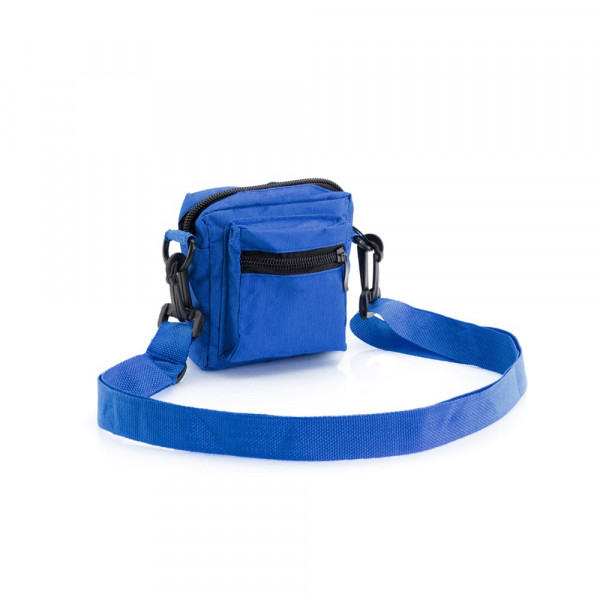 Mini-Umhängetasche aus robustem 600D Polyester in verschiedenen Farben. Mit Reißverschluss, Außentasche mit Reißverschluss, und Schlaufe für die Befestigung am Gürtel auf der Rückseite. Farblich passender, verstellbarer Schultergurt mit Karabinerbefestigung.