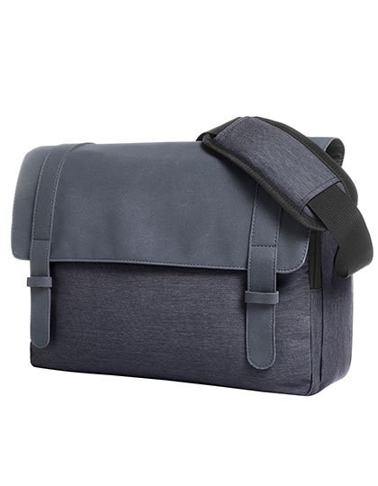 Junge Notebooktasche mit moderner, geometrischer Schnittführung | Materialmix aus Velours-Kunstleder und Melange-Gewebe | Hauptfach mit gepolsterter Notebookhalterung | Reißverschluss-Vortasche mit zwei flachen Einsteckfächern | 2-Wege-Reißverschlüsse | Überschlag mit Magnetverschluss | Rückseitige Reißverschluss-Tasche | Befestigungsschlaufe für Trolley-Gestänge | Längenverstellbarer Schultergurt mit genähtem Schulterpolster | Lieferung ohne Inhalt/Deko