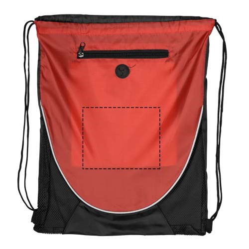 Offenes Hauptfach mit Kordelzugverschluss. Reißverschlusstasche vorne mit Ohrhöreröffnung.