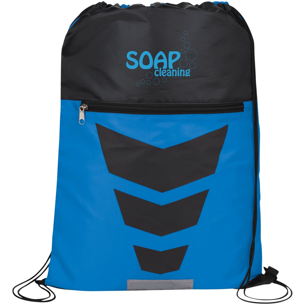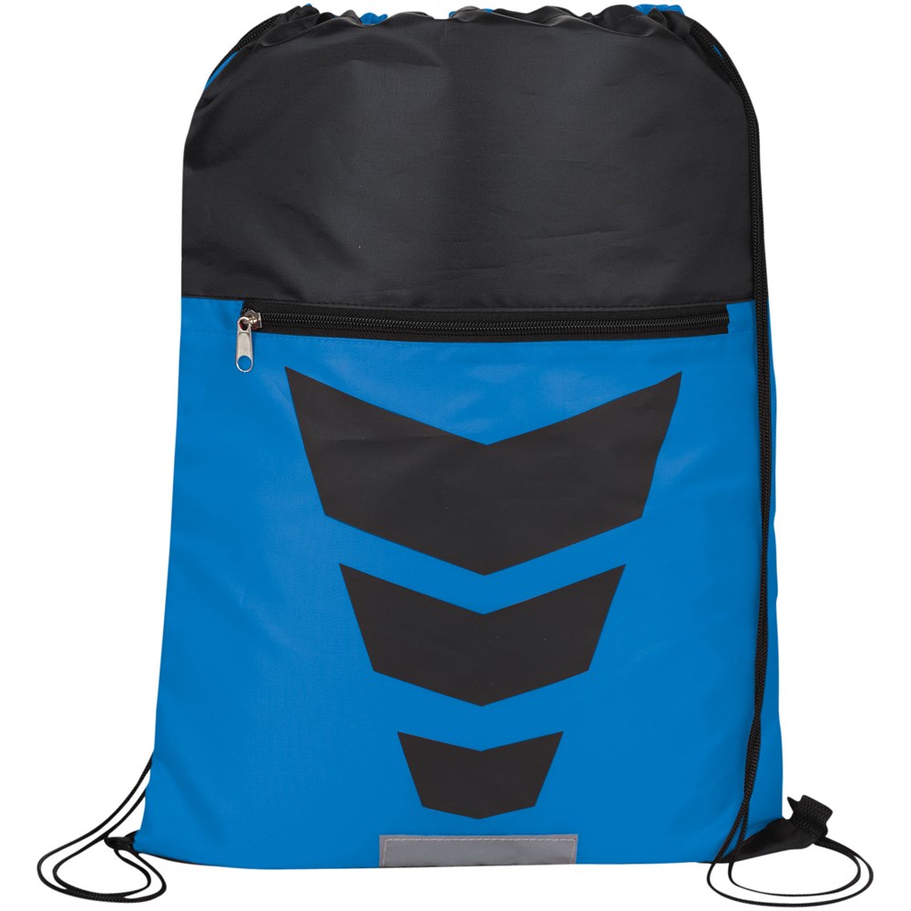 Dieser Kordelzug Rucksack mit attraktivem grafischen Design und reflektierenden Details auf der Vorderseite wird die Sichtbarkeit in der Nacht erhöhen. Das große Hauptfach mit Kordelzugverschluss und das zusätzliche Reißverschlussfach vorne, werden Ihr Eigentum schützen.