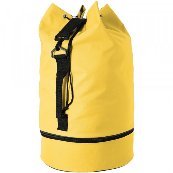 Seesack mit Kordelzugverschluss, seitlichem Griff und einstellbarem Schulterriemen. Mit separatem Reißverschlussfach unten.