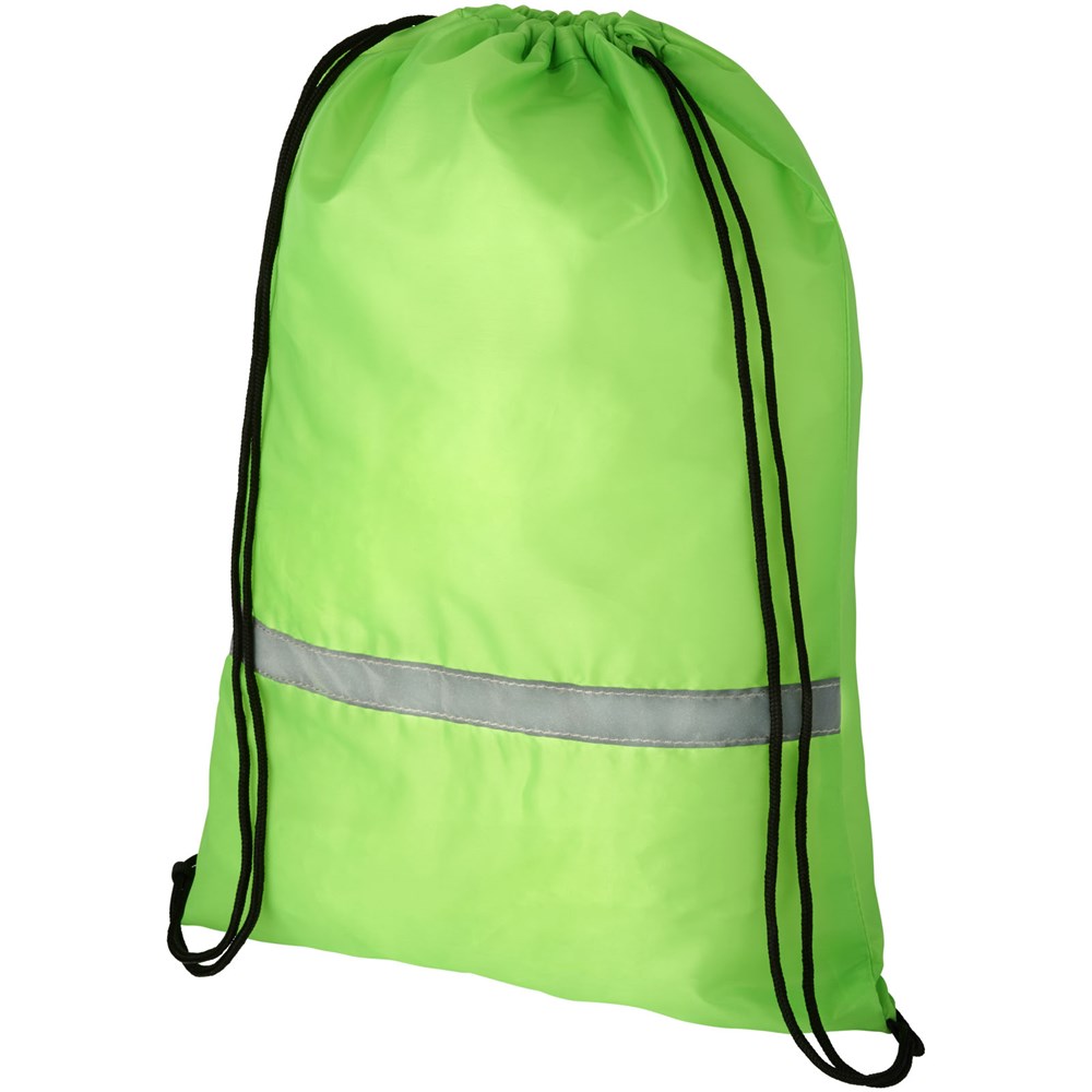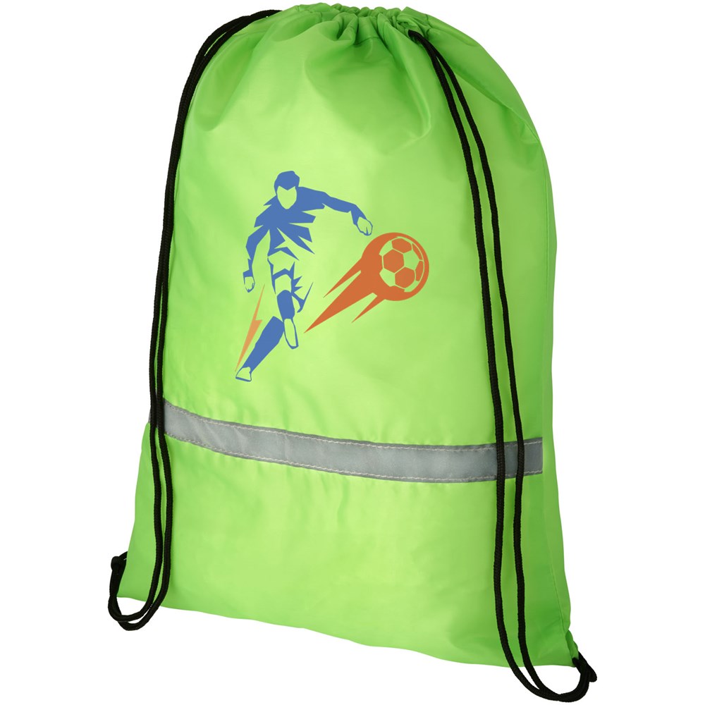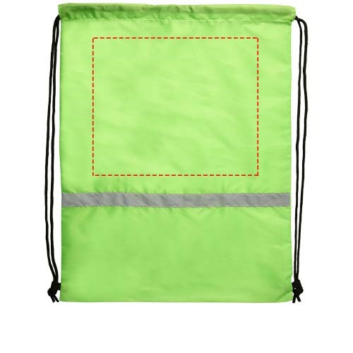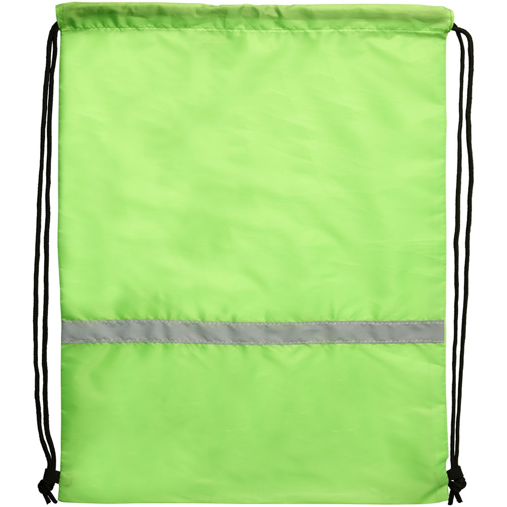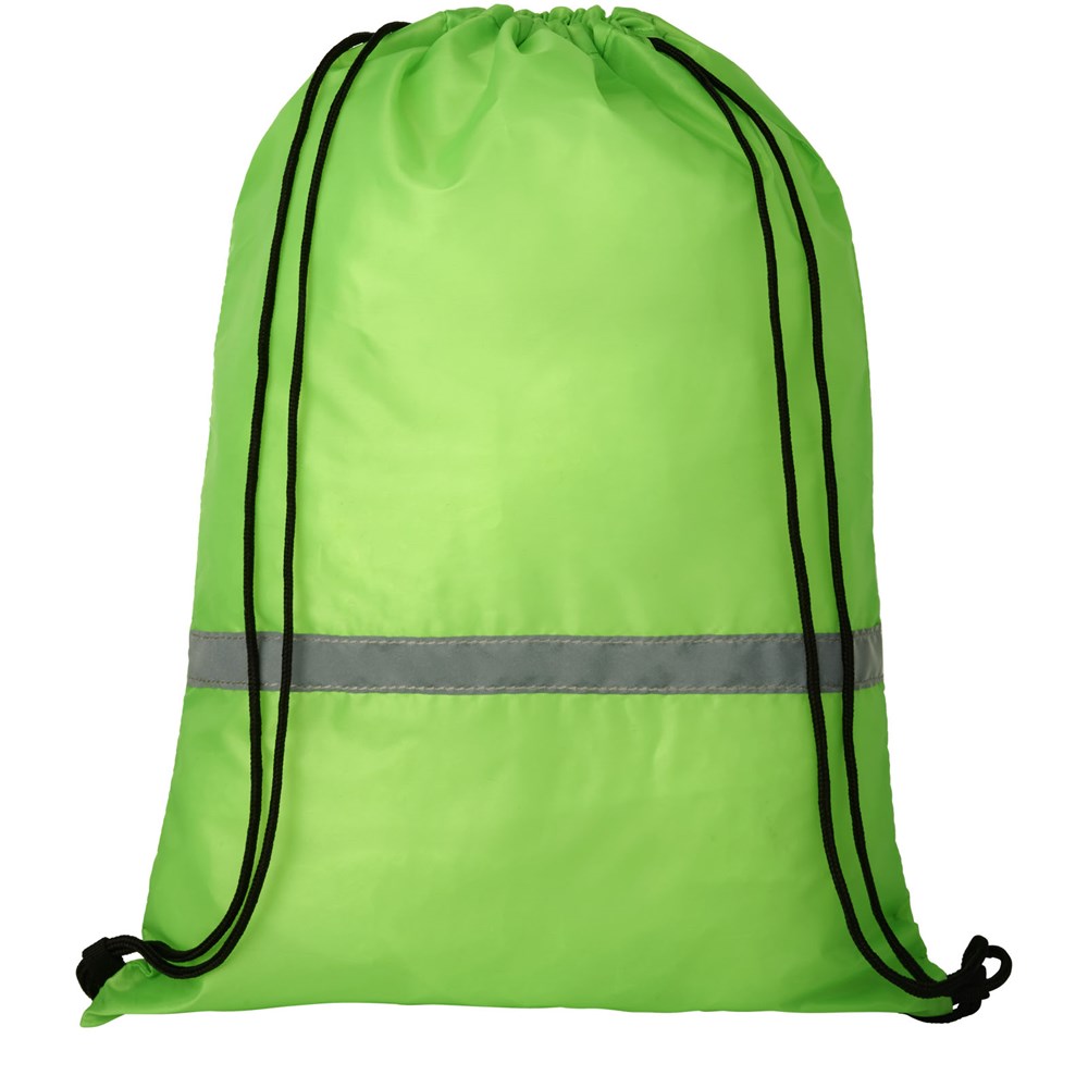 Sportbeutel, zertifiziert nach EN 13356. Großes Hauptfach mit Kordelzugverschluss. Ausgestattet mit einem reflektierenden Frontband und verstärkten Ecken. Beständigkeit bis zu 5 kg.