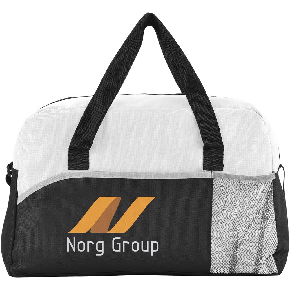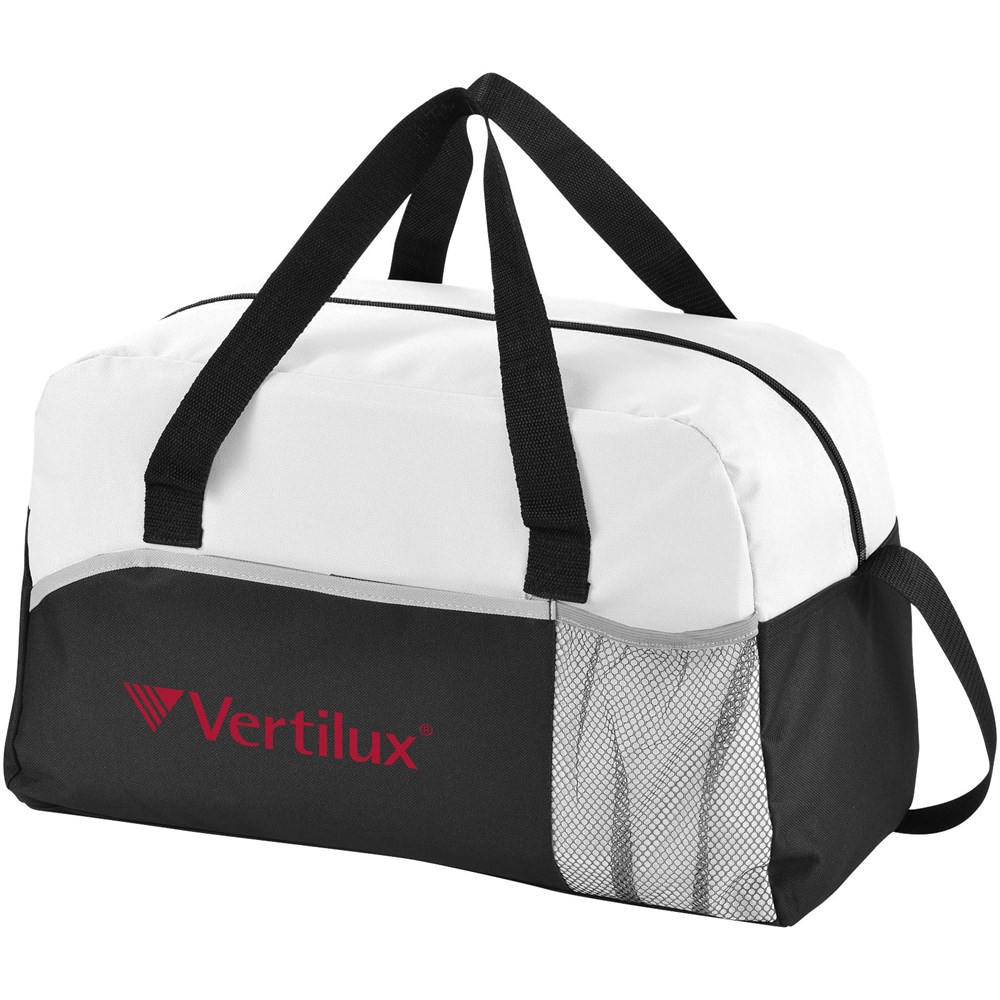 Hauptfach mit Reißverschluss. Tasche mit Klettverschluss vorne. Netztasche zum Aufbewahren einer Flasche vorne. Doppelte, verstärkte Tragegriffe. Verstellbarer Schulterriemen.