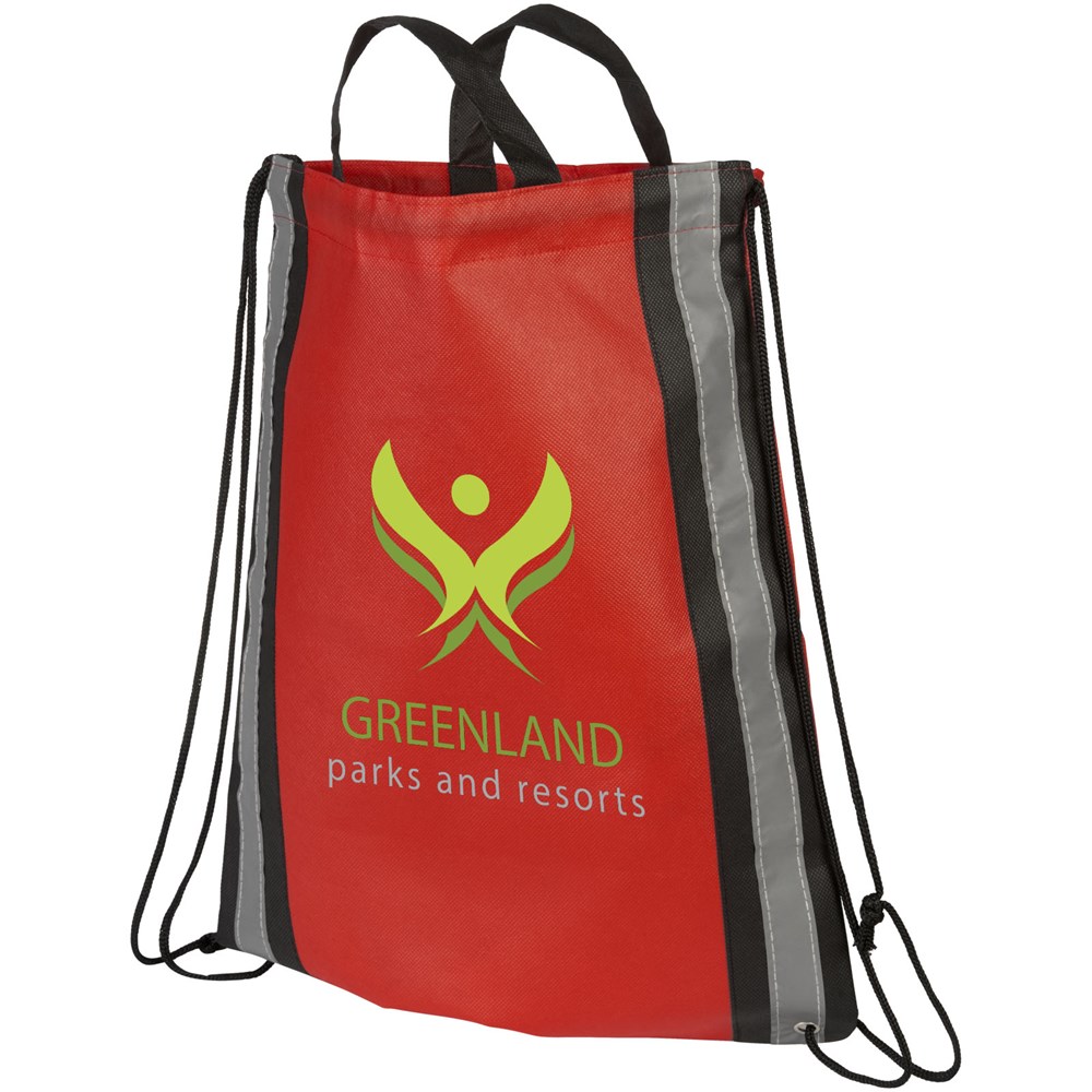 Die PP-NonWoventasche mit Kordelzug verfügt über reflektierende Streifen an jeder Seite, ideal um Ihrer Marke mehr Sichtbarkeit zu verschaffen.