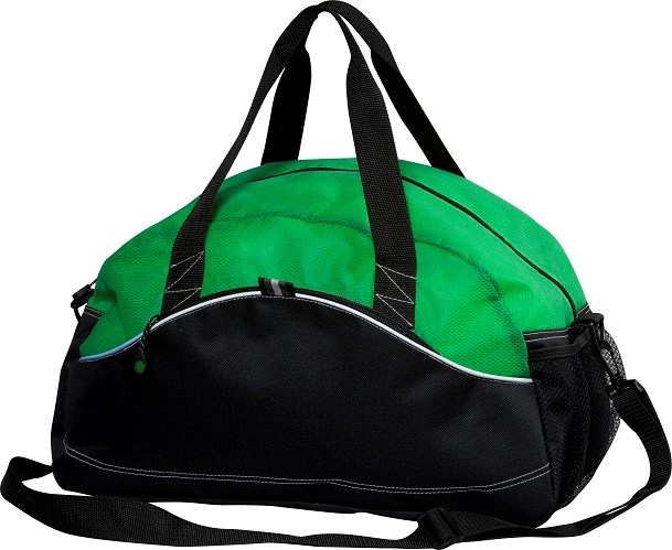 2-farbige Sporttasche. Verstellbarer Tragegurt. Seitentasche mit Reißverschluss. Am Reißverschluss-Zipper kann ein eigenes Logo angebracht werden.