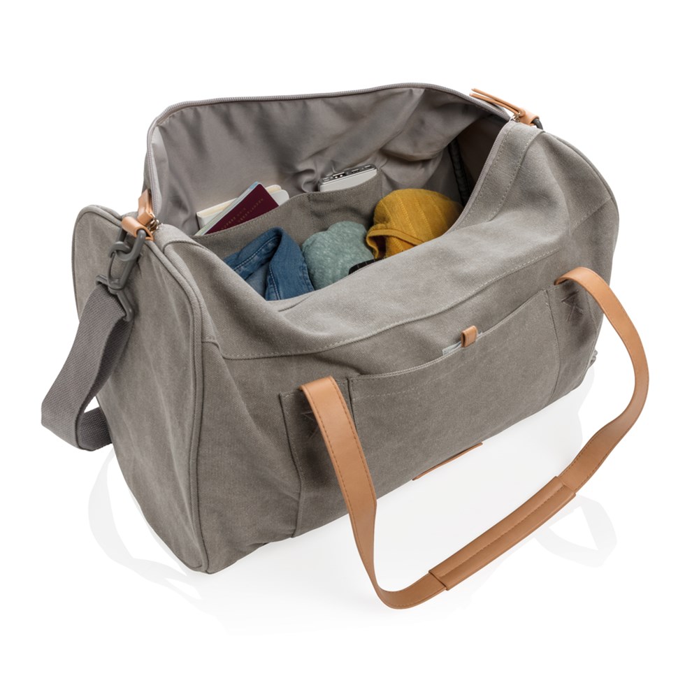 Stylisch unterwegs, in dieser Tasche finden alle Ihre wichtigen Dinge für einen Kurztrip ihren Platz. Mit einstellbarem, aber auch abnehmbarem Schultergurt. PVC-frei
