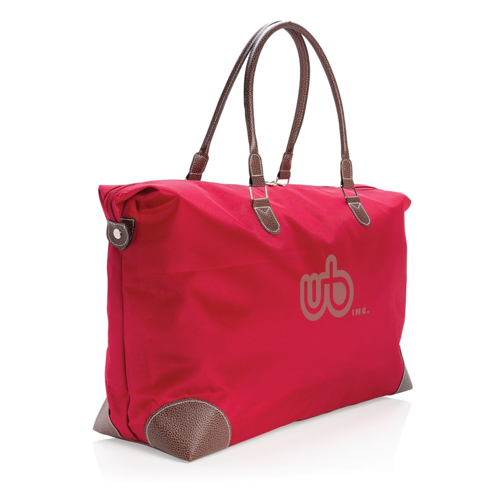 Gehen Sie stylisch auf Reisen und haben Sie all Ihre Kleidung und Accessoires ordentlich in dieser sportlich-eleganten Wochenendtasche aus glattem Mikrofaser dabei.