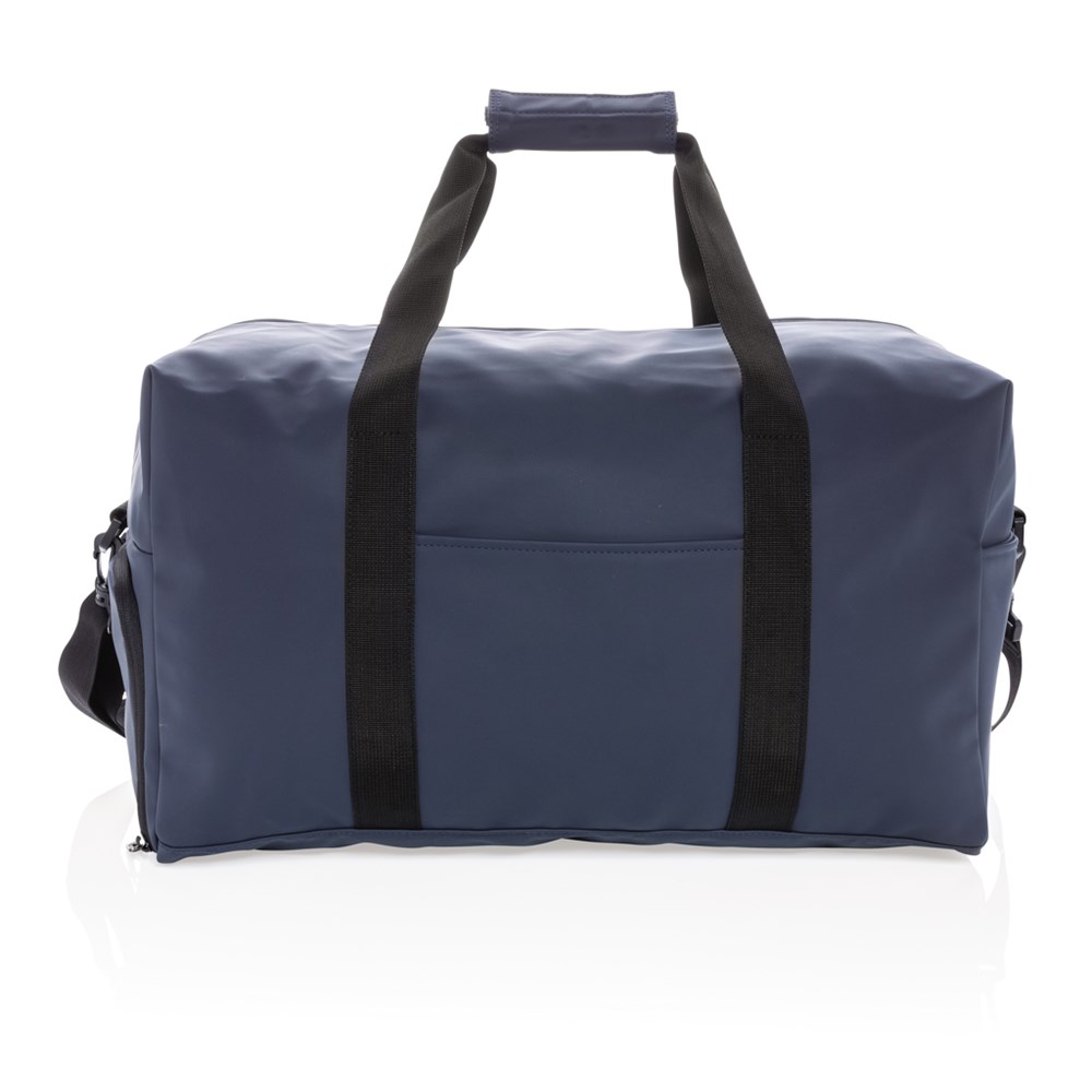 Diese Wochenendtasche aus glattem PU eignet sich für tägliche Ausflüge ins Fitnessstudio sowie für einen Wochenendausflug. Sie verfügt über ein kastenförmiges, minimalistisches Design, eine Außentasche vorne, eine Innentasche und ein großes Hauptfach. Zudem hat die Tasche ein praktisches Schuhfach an der Seite. Mit dem verstellbaren Gurt kann sie über der Schulter oder quer getragen werden, oder Sie halten Sie in der Hand mit den stabilen Stoffgriffen. Außen 100% PU. Innen aus 100% 210D Polyester. PVC-frei.
