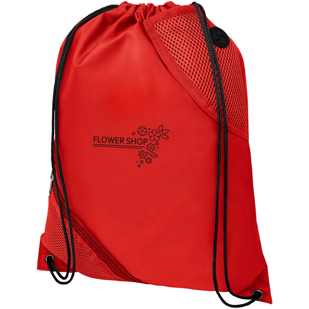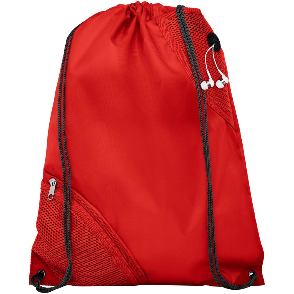 Sportbeutel mit Hauptfach und Kordelzugverschluss in passender Farbe. Ausgestattet mit 2 kleinen Netz-Fronttaschen auf der Vorderseite (1 mit Reißverschluss und 1 mit Klettverschluss) und ein Fach für Ohrhörer. Beständigkeit bis zu 5 kg.