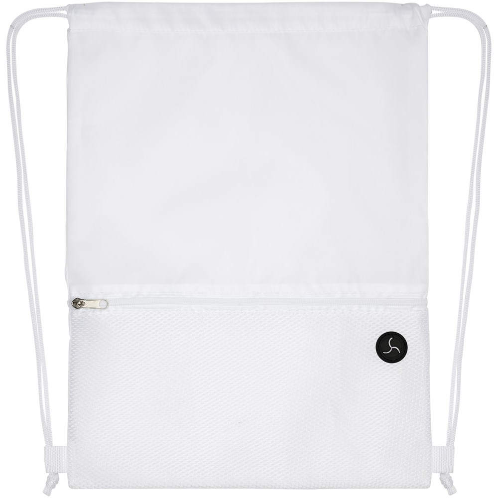 Sportbeutel mit Hauptfach und Kordelzugverschluss in passender Farbe. Ausgestattet mit einem Netz-Fach auf der Vorderseite und und einem Fach für Ohrhörer. Beständigkeit bis zu 5 kg.
