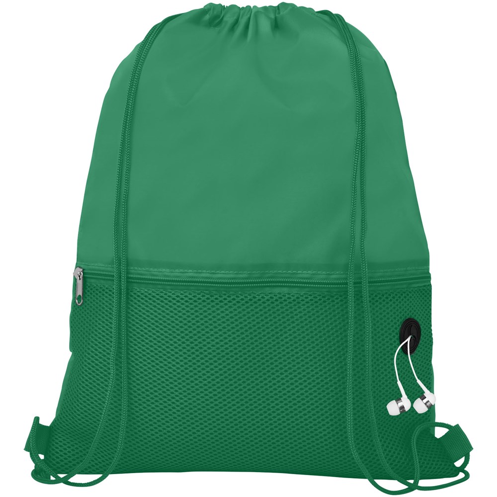 Sportbeutel mit Hauptfach und Kordelzugverschluss in passender Farbe. Ausgestattet mit einem Netz-Fach auf der Vorderseite und und einem Fach für Ohrhörer. Beständigkeit bis zu 5 kg.