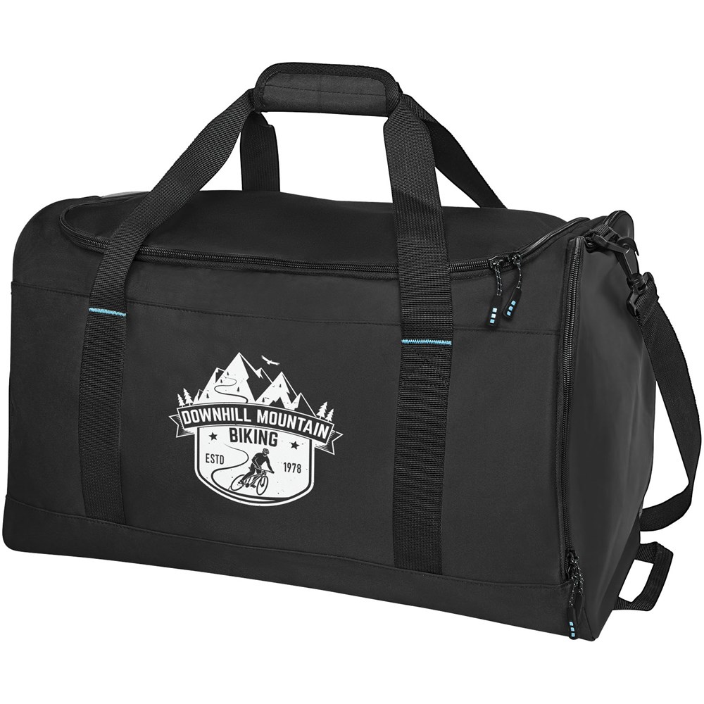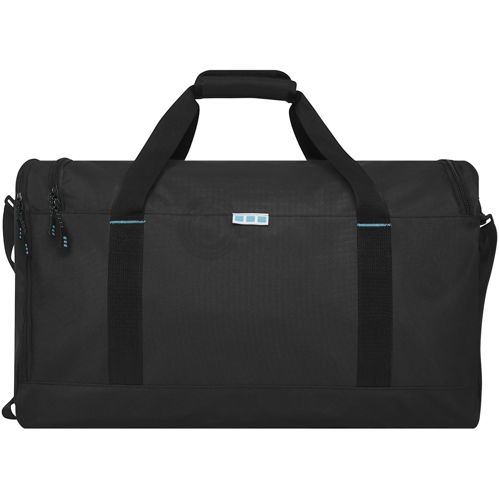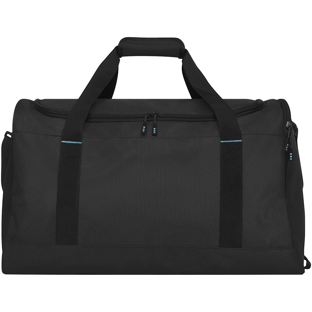 Nachhaltiger GRS-zertifizierter RPET-Seesack aus 55 % recycelten Materialien. Ausgestattet mit einem großen Hauptfach mit Reißverschluss, einer verstärkte Basisplatte, einer seitliche Netztasche und einer erweiterbaren Nass-/Trockentasche mit Reißverschluss. Kommt mit einer kleinen Innentasche mit Reißverschluss zur Organisation, einem abnehmbaren und gepolsterten Schultergurt, Haltegriffen mit gepolstertem Klettverschluss und einem zusätzlichen Haltegriff auf der rechten unteren Seite.