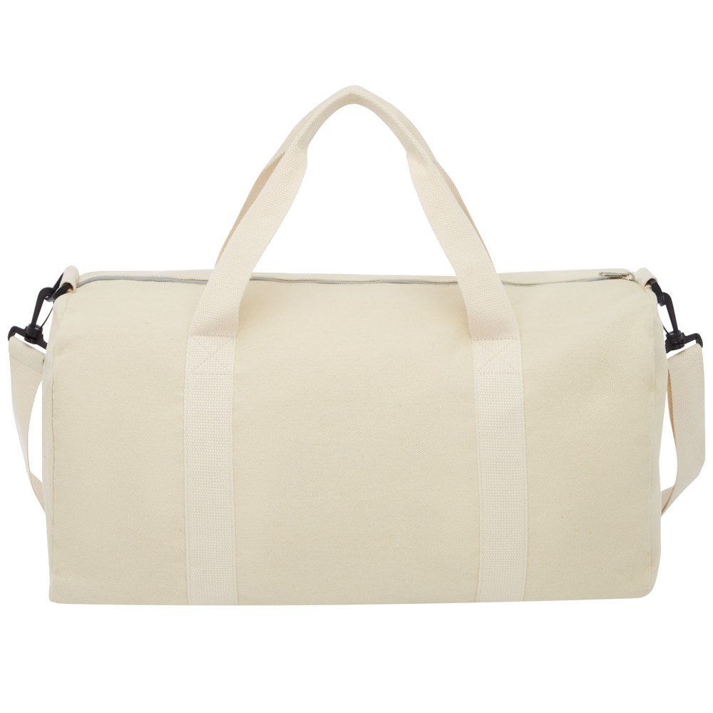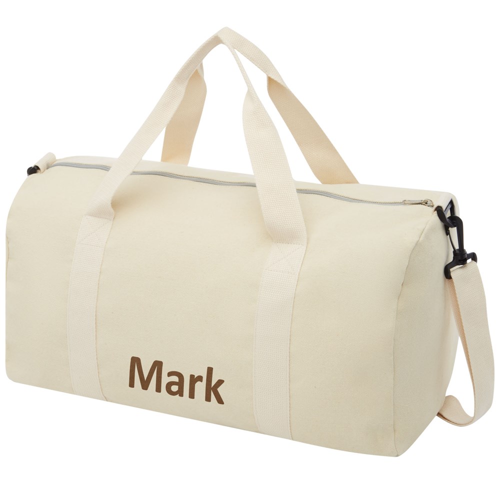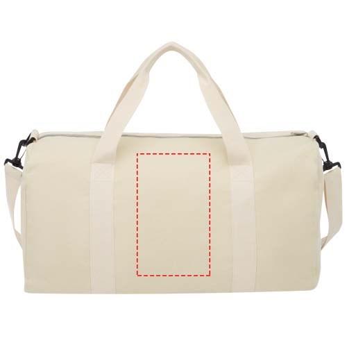 Reisetasche aus einer Mischung aus Recyclingbaumwolle und Polyester mit verstellbarem Schultergurt. Recycelte Baumwolle wird aus Verbrauchsabfällen hergestellt, die während des Schneidevorgangs in Textilfabriken anfallen. Ähnliche Farben werden miteinander vermischt, sodass keine zusätzliche Färbung erforderlich ist. Aufgrund der Beschaffenheit von Recyclingbaumwolle kann es zu leichten Farbabweichungen kommen. Diese Eigenschaft trägt deutlich zu einem authentischeren Erscheinungsbild bei.