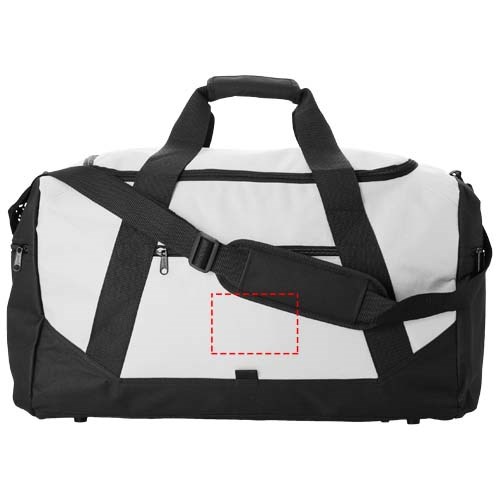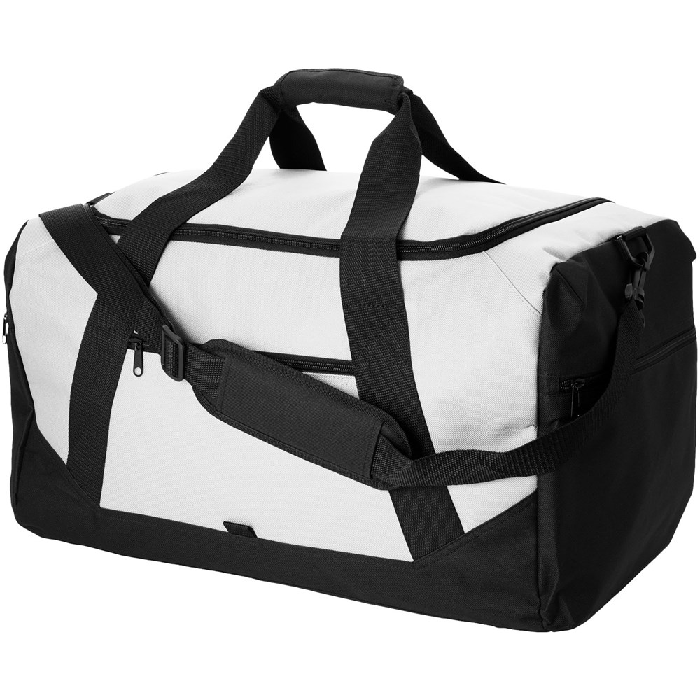 Reisetasche, die auch für den Sport geeignet ist, mit einem Hauptfach mit Reißverschluss und 2 seitlichen Reißverschlusstaschen.