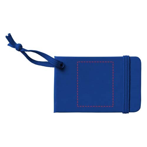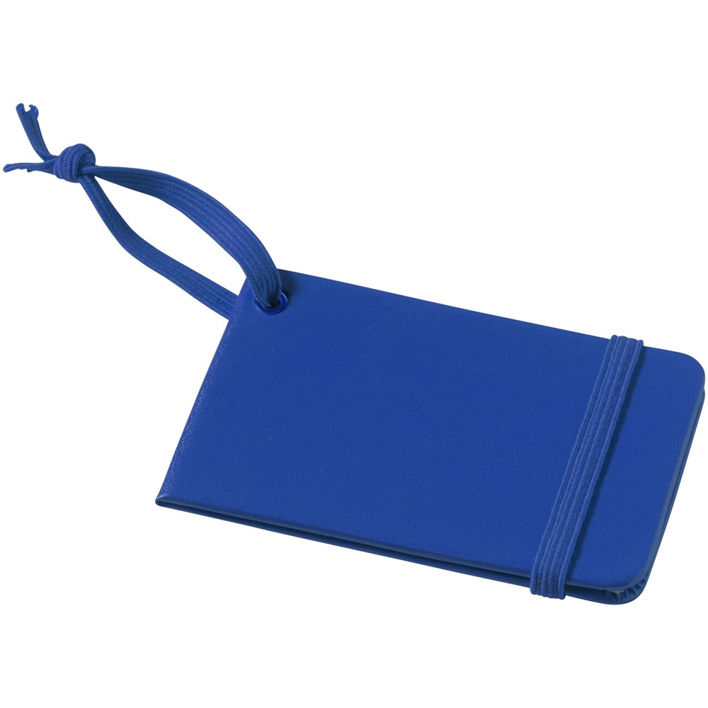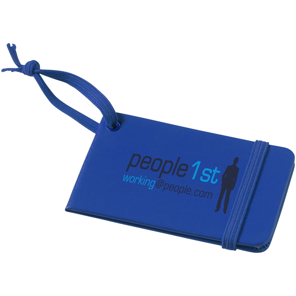 Kofferanhänger mit passendem Gummiverschluss und passendem Gummiband. ID-Karte im Inneren gibt Name, Adresse, Telefon und E-Mail an.