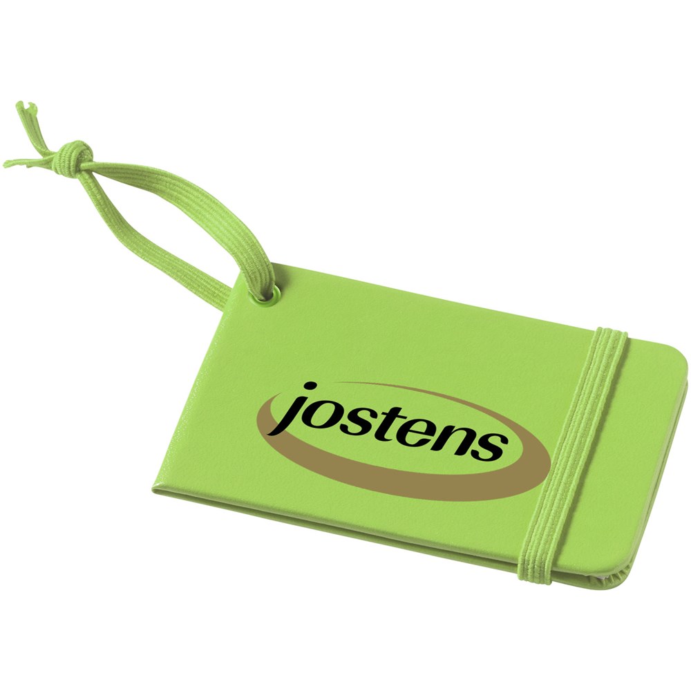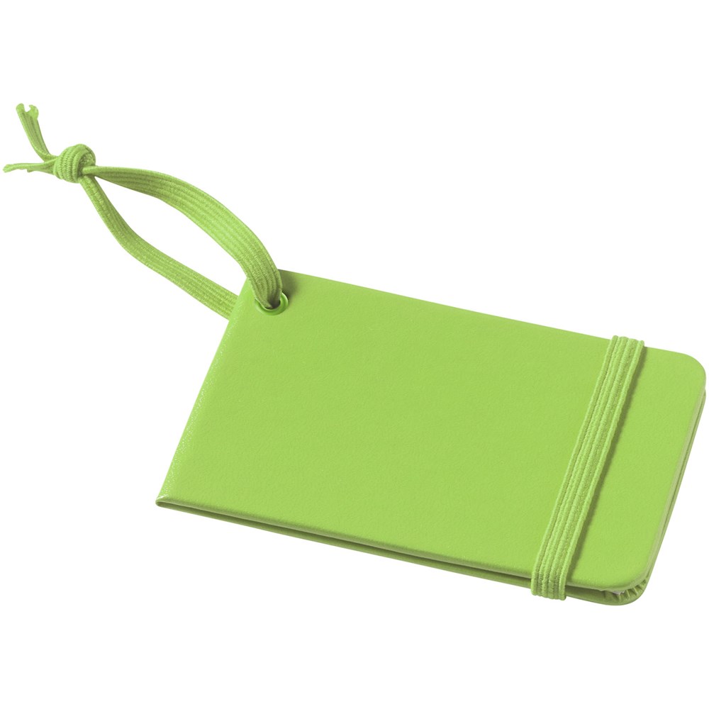 Kofferanhänger mit passendem Gummiverschluss und passendem Gummiband. ID-Karte im Inneren gibt Name, Adresse, Telefon und E-Mail an.