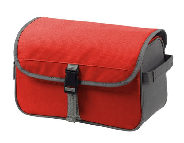 zum Aufstellen oder -hängen; gepolstertes Hauptfach; drei Reißverschluss-Einsteckfächer; Steckschnalle; Handgriff