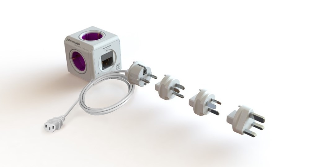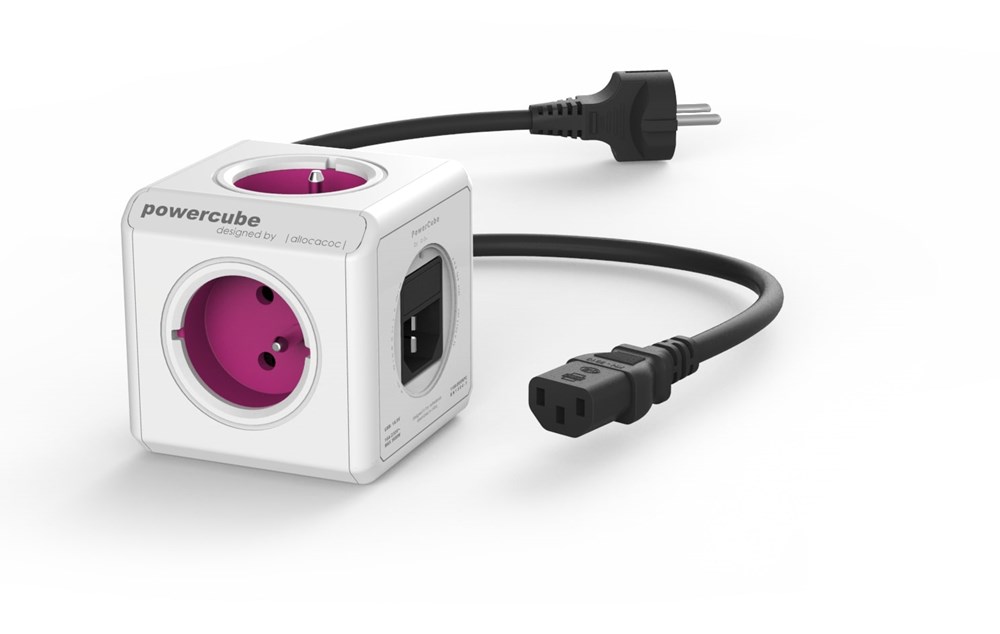 Der PowerCube ReWirable ist mit Steckdosen in den Farben Lila und Grau erhältlich.
