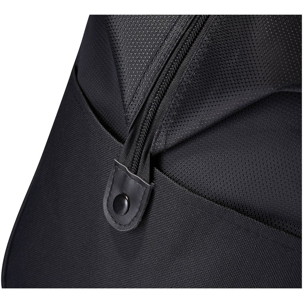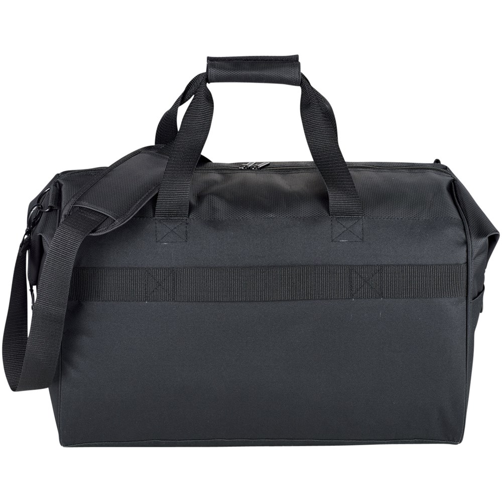 Vault RFID Reisetasche. Reisetasche bietet versteckte RFID Block Technologie in der Vordertasche, um Ihre Karten und Ihren Ausweis vor Identiätsdiebstahl zu schützen. Inkl. Reißverschluss Organisationsfach vorne und einem großen Reißverschluss Hauptfach. Abnehmbare, gepolsterte Schultergurte für verbesserten Komfort. Trolley Befestigung auf der Rückseite für leichteres Reisen. 600D Poly Canvas mit Dobby Akzenten.