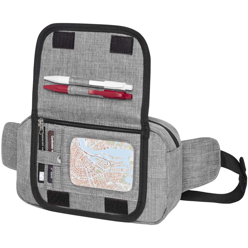 Große Gürteltasche mit meliertem Farbeffekt. Ausgestattet mit einem Hauptfach mit Reißverschluss und einem geschlossenem Frontfach mit Klettverschluss, in dem Karten, Stifte oder andere kleine Gegenstände aufbewahrt werden können. Die Tasche hat einen verstellbaren Hüftgurt mit Schnellverschluss. Es kann zu geringfügigen Farbveränderungen des eigentlichen Produkts kommen, die auf die Beschaffenheit der Gewebefarbstoffe, Gewebe und Drucke zurückzuführen sind.